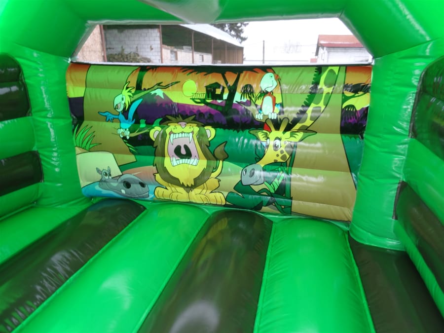 The perfect combination of Bouncy castle and slide in a fantastic Jungle theme