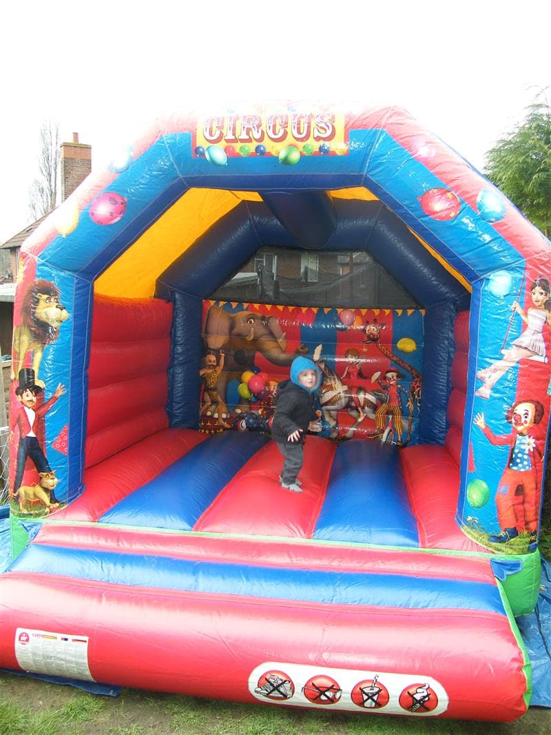 The Circus Bouncy Castle is a bright and compact inflatable that brings a classic fairground feel to children’s parties and events. Featuring a traditional circus tent colour scheme and bold circus-themed artwork, it is a popular choice for younger children.